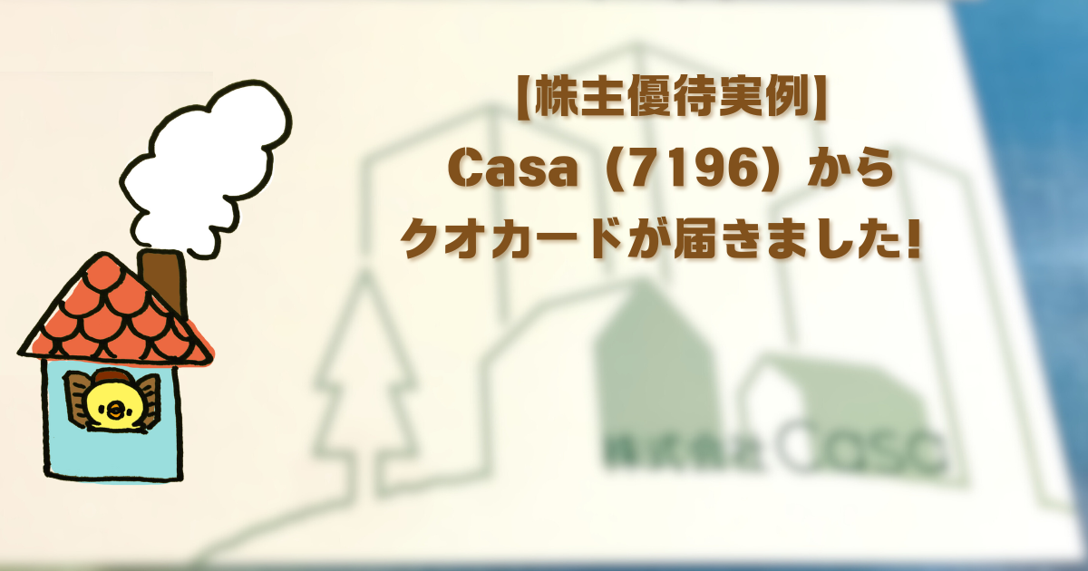 今回は、株主会社Casa(7196)から届いたクオカード1,000円分の優待についてご紹介しながら、企業情報や投資メリットについても解説していきます。