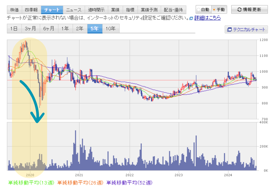 2020年の春、株式会社コロナの株価は急激に下落しました。