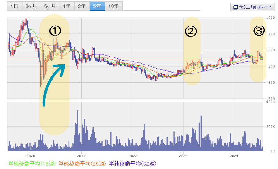 株式会社コロナとは無関係なニュース、②③の時期も値上がりや値下がりを見せています。
